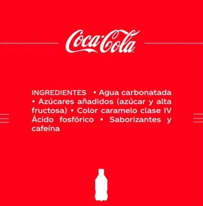 El producto contiene 45 gramos (g) de azúcares por envase de 600 mililitros (ml), lo que es equivalente a 9 cucharadas cafeteras. El producto está etiquetado con EXCESO DE AZÚCARES por sobrepasar el 10% del total de las calorías proveniente de azúcares añadidos, según lo establecido en la NOM-051. Aporta 180 calorías (cal) por botella, que de acuerdo con los límites establecidos en la NOM-051 excede las 10 calorías provenientes de azúcares añadidos por cada 100 ml de producto. El total de las calorías proviene de los azúcares.